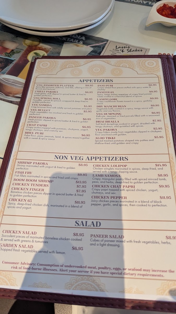 Items like samosas, pakoras, and tikki, offering a mix offl avors and textures